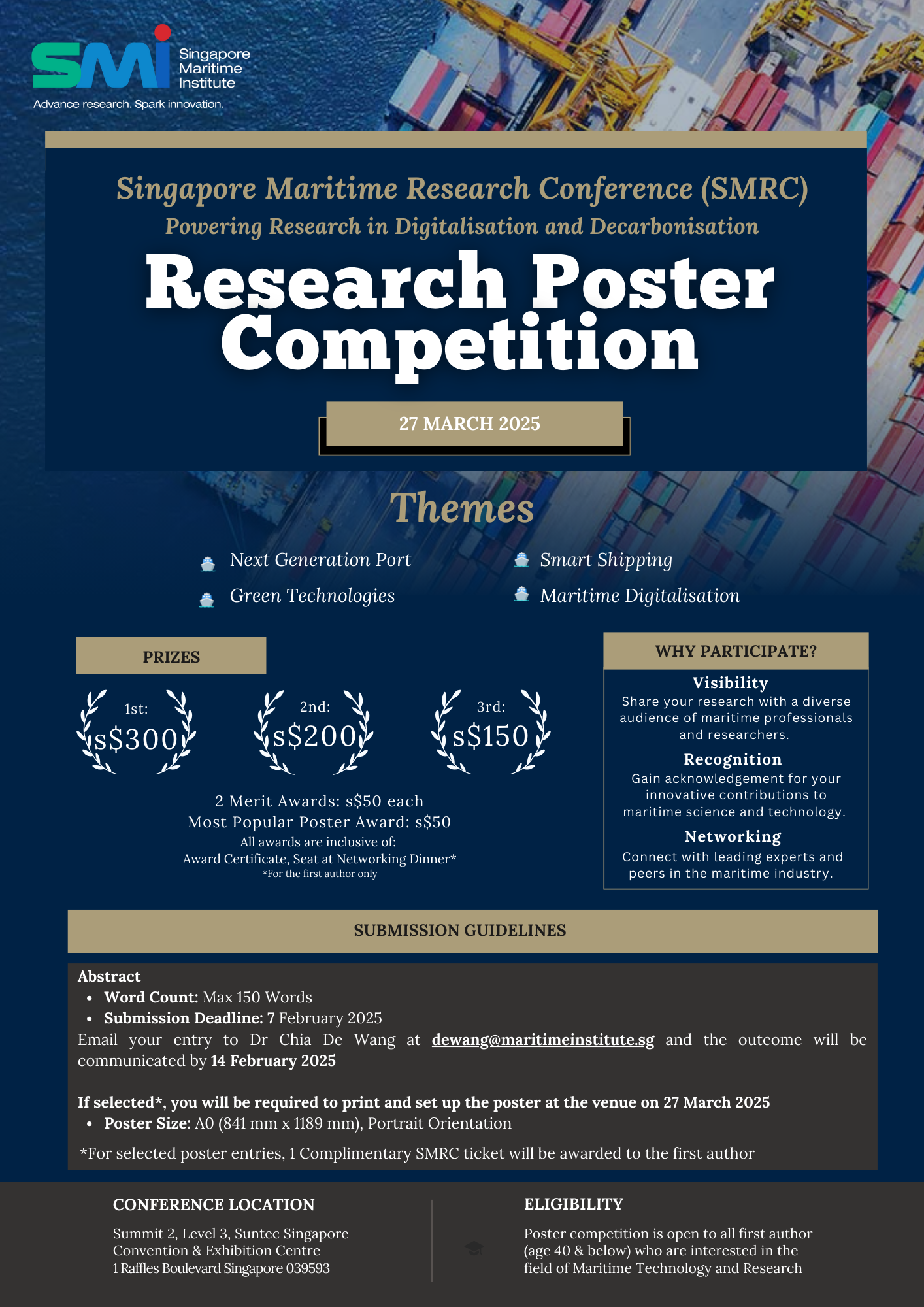 - Open to Lead Author of the research project (age 40 and below), who are interested in the field of Maritime Technology and Research.