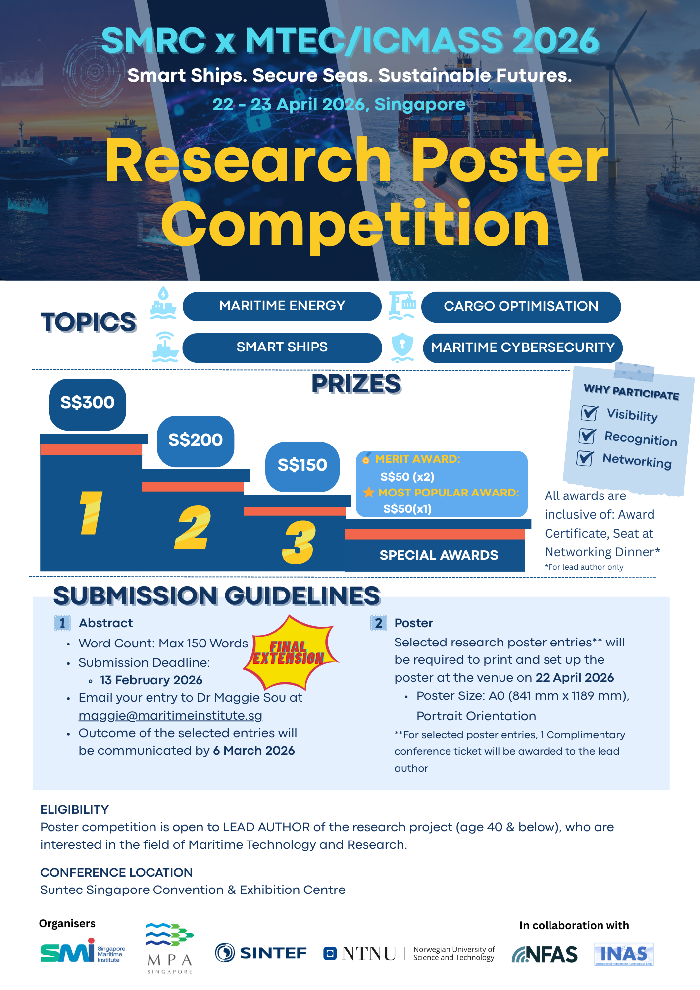 Full details are available in the poster appended below. Submit your poster abstract before the deadline to be part of the region’s leading maritime research event.